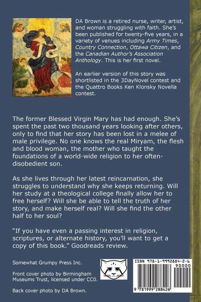The former Blessed Virgin Mary has spent the past two thousand years looking after others, only to find that her true story has been erased. No one knows the real Miryam, the flesh and blood mother, the woman who taught the foundations of a world-wide religion to her often disobedient son. As she lives through her latest reincarnation, she struggles to understand why she keeps returning. Will her study at a Theological College finally allow her to free herself? Will she be able to retell her story, make herself real? Will she find the other half to her soul?