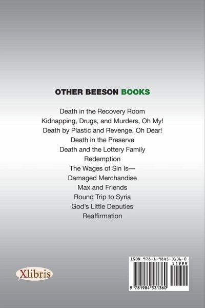 OTHER BEESON BOOKS Death in the Recovery Room Kidnapping, Drugs, and Murders, Oh My! Death by Plastic and Revenge, Oh Dear! Death in the Preserve Death and the Lottery Family Redemption The Wages of Sin Is Damaged Merchandise Max and Friends Round Trip to Syria Gods Little Deputies Reaffirmation