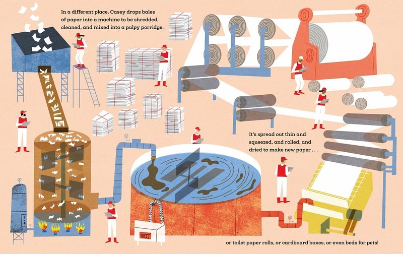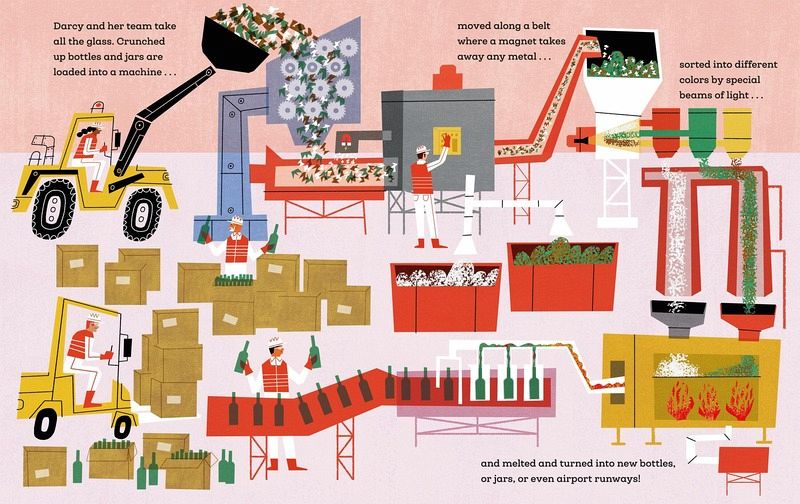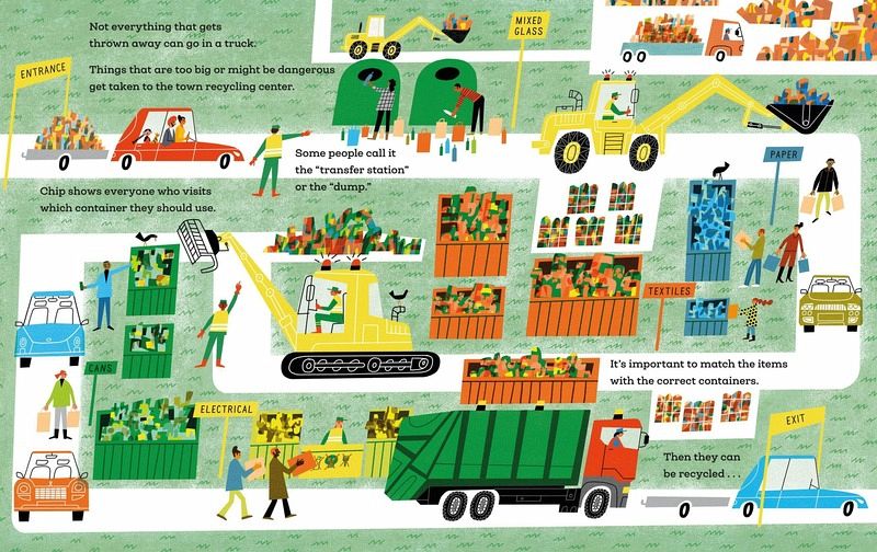 Find out where recycling goes in this vibrant and fascinating illustrated guide for kids! Empty things, broken things, yucky things — follow the journey of recycled objects as they move through the recycling process in order to be reused in all sorts of interesting ways. With stylish, contemporary artwork from award-winning illustrator Klas Fahlén and friendly narrative text by Polly Faber, this engrossing picture book introduces all the people, processes, machines, and vehicles involved in recycling and trash disposal! From garbage collectors and waste recycling center workers to container ship captains and landfill employees, children will be fascinated to find out how trash is managed! Additional nonfiction back matter includes three pages of fully illustrated recycling facts and tips to inspire kids to reduce waste and reuse items.