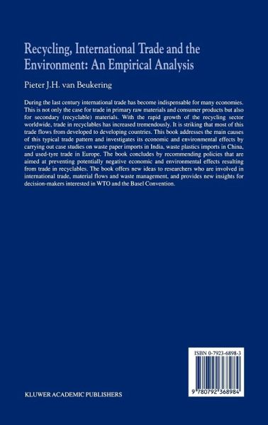 During the last century international trade has become indispensable for many economies. This is not only the case for trade in primary raw materials and consumer products but also for secondary (recyclable) materials. With the rapid growth of the recycling sector worldwide, trade in recyclables increased tremendously. It is striking that most of this trade flows from developed to developing countries. This book addresses the main causes of this typical trade pattern and investigates its economic and environmental effects by carrying out case studies on waste paper imports in India, waste plastics imports in China, and used-tyre trade in Europe. The book concludes by recommending policies that are aimed at preventing negative economic and environmental effects potentially resulting from trade in recyclables. The book offers new ideas to researchers who are involved in international trade, material flows, and waste management, and provides new insights for decision-makers who are interested in WTO and the Basel Convention.