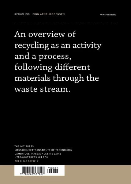 Is there a point to recycling? Is recycling even good for the environment? In this volume in the MIT Press Essential Knowledge series, Finn Arne Jørgensen answers (drumroll, please): it depends. From a technical point of view, recycling is a series of processes collecting, sorting, processing, manufacturing. Recycling also has a cultural component; at its core, recycling is about transformation and value, turning material waste into something useful plastic bags into patio furniture, plastic bottles into T-shirts. Jørgensen offers an accessible and engaging overview of recycling as an activity and as a process at the intersection of the material and the ideological.