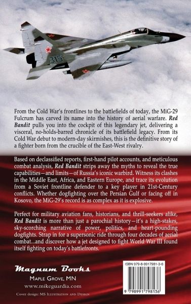 MiG-29: Born to Fight, Built to Endure The story of the fighter that wouldn't back down... From the Cold War's frontlines to the battlefields of today, the MiG-29 Fulcrum has carved its name into the history of aerial warfare. Red Bandit pulls you into the cockpit of this legendary jet, delivering a visceral, no-holds-barred chronicle of its battlefield legacy. From its Cold War debut to modern-day skirmishes, this is the definitive story of a fighter born from the crucible of an East-West rivalry. Based on de-classified reports, first-hand pilot accounts, and meticulous combat analysis, Red Bandit strips away the myths to reveal the true capabilities-and limits-of Russia's iconic warbird. Witness its clashes in the Middle East, Africa, and Eastern Europe, and trace its evolution from a Soviet frontline defender to a key player in 21st-Century conflicts. Whether dogfighting over Iraq or facing off in Ukraine, the MiG-29's record is as complex as it is explosive. Perfect for military aviation fans, historians, and thrill-seekers alike, Red Bandit is more than just a parochial history-it's a high-stakes, sky-scorching narrative of power, politics, and heart-pounding dogfights. Strap in for a supersonic ride through four decades of aerial combat...and discover how a jet designed to fight World War III found itself fighting on today's battlefronts.