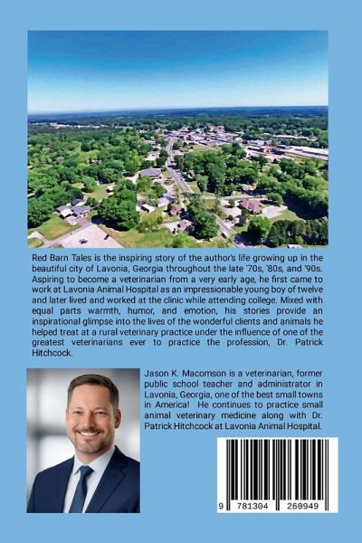 Red Barn Tales is the inspiring story of the author's life growing up in the beautiful city of Lavonia, Georgia throughout the late '70s, '80s, and '90s. Aspiring to become a veterinarian from a very early age, he first came to work at Lavonia Animal Hospital as an impressionable young boy of twelve and later lived and worked at the clinic while attending college. Mixed with equal parts warmth, humor, and emotion, his stories provide an inspirational glimpse into the lives of the wonderful clients and animals he helped treat at a rural veterinary practice under the influence of one of the greatest veterinarians ever to practice the profession, Dr. Patrick Hitchcock.