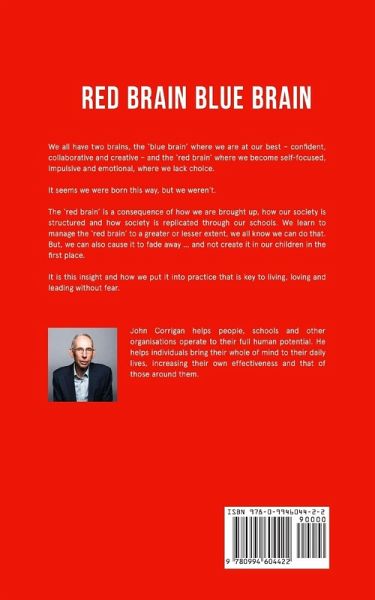 We all have two brains, the 'blue brain' where we are at our best - confident, collaborative and creative - and the 'red brain' where we become self-focused, impulsive and emotional, where we lack choice. It seems we were born this way, but we weren't. The 'red brain' is a consequence of how we are brought up, how our society is structured and how society is replicated through our schools. We learn to manage the 'red brain' to a greater or lesser extent, we all know we can do that. But, we can also cause it to fade away ... and not create it in our children in the first place. It is this insight and how we put it into practice that is key to living, loving and leading without fear.