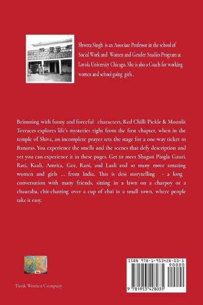 Brimming with funny and forceful characters, Red Chilli Pickle & Moonlit Terraces explores life's mysteries right from the first chapter, when in the temple of Shiva, an incomplete prayer sets the stage for a one-way ticket to Banaras. You experience the smells and the scenes that defy description and yet you can experience it in these pages. Get to meet Shagun Pingla Gauri, Rati, Kaali, Amrita, Gee, Rani, and Laali and so many more amazing women and girls ... from India. This is desi storytelling - a long conversation with many friends, sitting in a lawn on a charpoy or a chauraha, chit-chatting over a cup of chai in a small town, where people take it easy.
