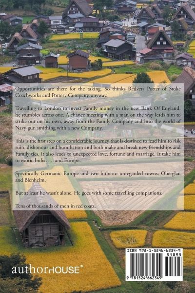 Opportunities are there for the taking. So thinks Redvers Potter of Stoke Coachworks and Pottery Company, anyway. Travelling to London to invest Family money in the new Bank Of England, he stumbles across one. A chance meeting with a man on the way leads him to strike out on his own, away from the Family Company and into the world of Navy gun smithing with a new Company. This is the first step on a considerable journey that is destined to lead him to risk ruin, dishonour and humiliation and both make and break new friendships and Family ties. It also leads to unexpected love, fortune and marriage. It take him to exotic India….. and Europe. Specifically Germanic Europe and two hitherto unregarded towns; Oberglau and Blenheim. But at least he wasn’t alone. He goes with some travelling companions. Tens of thousands of men in red coats.