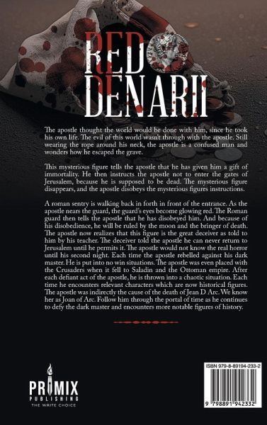 The apostle thought the world would be done with him, since he took his own life. The evil of this world wasn't through with the apostle. Still wearing the rope around his neck, the apostle is a confused man and wonders how he escaped the grave. This mysterious figure tells the apostle that he has given him a gift of immortality. He then instructs the apostle not to enter the gates of Jerusalem, because he is supposed to be dead. The mysterious figure disappears, and the apostle disobeys the mysterious figures instructions. A roman sentry is walking back in forth in front of the entrance. As the apostle nears the guard, the guard's eyes become glowing red. The Roman guard then tells the apostle that he has disobeyed him. And because of his disobedience, he will be ruled by the moon and the bringer of death. The apostle now realizes that this figure is the great deceiver as told to him by his teacher. The deceiver told the apostle he can never return to Jerusalem until he permits it. The apostle would not know the real horror until his second night. Each time the apostle rebelled against his dark master. He is put into no win situations. The apostle was even placed with the Crusaders when it fell to Saladin and the Ottoman empire. After each defiant act of the apostle, he is thrown into a chaotic situation. Each time he encounters relevant characters which are now historical figures. The apostle was indirectly the cause of the death of Jean D Arc. We know her as Joan of Arc. Follow him through the portal of time as he continues to defy the dark master and encounters more notable figures of history.