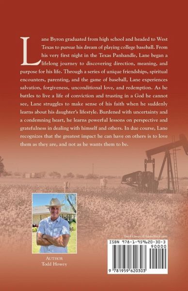 Lane Byron graduated from high school and headed to West Texas to pursue his dream of playing college baseball. From his very first night in the Texas Panhandle, Lane began a lifelong journey to discovering direction, meaning, and purpose for his life. Through a series of unique friendships, spiritual encounters, parenting, and the game of baseball, Lane experiences salvation, forgiveness, unconditional love, and redemption. As he battles to live a life of conviction and trusting in a God he cannot see, Lane struggles to make sense of his faith when he suddenly learns about his daughter's lifestyle. Burdened with uncertainty and a condemning heart, he learns powerful lessons on perspective and gratefulness in dealing with himself and others. In due course, Lane recognizes that the greatest impact he can have on others is to love them as they are, and not as he wants them to be.