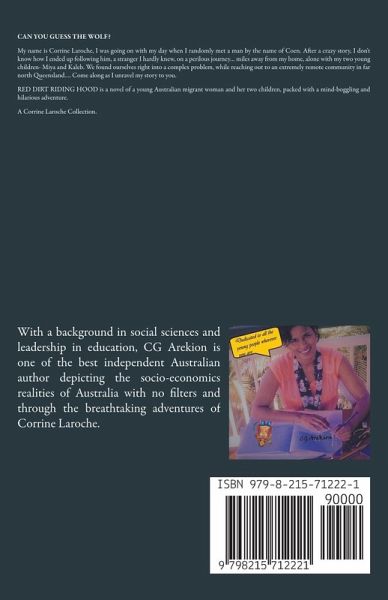 CAN YOU GUESS THE WOLF? My name is Corrine Laroche, I was going on with my day when I randomly met a man by the name of Coen. After a crazy story, I don't know how I ended up following him, a stranger I hardly knew, on a perilous journey… miles away from my home, alone with my two young children- Miya and Kaleb. We found ourselves right into a complex problem, while reaching out to an extremely remote community in far north Queensland…. Come along as I unravel my story to you. RED DIRT RIDING HOOD is a novel of a young Australian migrant woman and her two children, packed with a mind-boggling and hilarious adventure. A Corrine Laroche Collection.