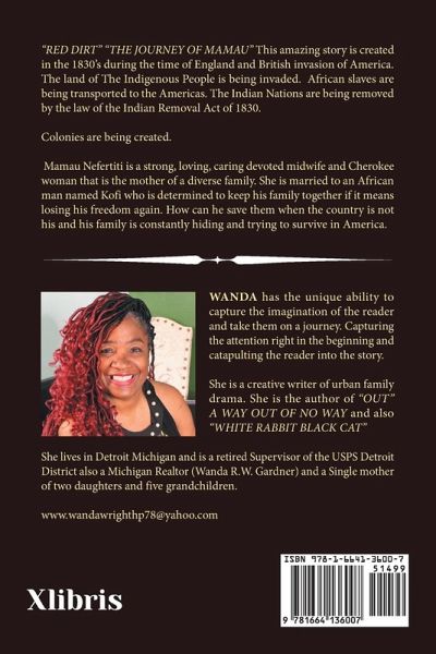 "RED DIRT" "THE JOURNEY OF MAMAU" This amazing story is created in the 1830's during the time of England and British invasion of America. The land of The Indigenous People is being invaded. African slaves are being transported to the Americas. The Indian Nations are being removed by the law of the Indian Removal Act of 1830. Colonies are being created. Mamau Nefertiti is a strong, loving, caring devoted midwife and Cherokee woman that is the mother of a diverse family. She is married to an African man named Kofi who is determined to keep his family together if it means losing his freedom again. How can he save them when the country is not his and his family is constantly hiding and trying to survive in America.