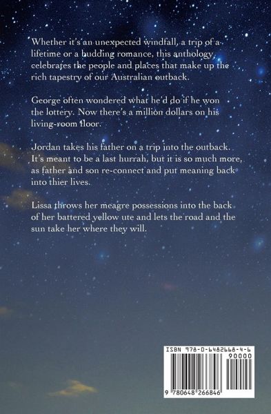 Whether it's an unexpected windfall, a trip of a lifetime or a budding romance, this anthology celebrates the people and places that make up the rich tapestry of our Australian outback. Life is funny sometimes. George often wondered what he'd do if he won the lottery. And now there's one million dollars sitting on the floor in front of him. What he does with that money will surprise and delight you. Jordan and his father take a last trip into the outback to find an old survey tree his father marked out in his youth. This trip is meant to give his father back his memories, but it does so much…mehr