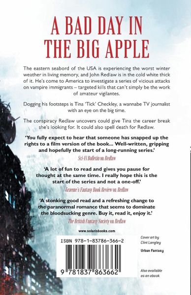 John Redlaw, policeman to the damned, marginalised vampires, comes to America to uncover a devastaing conspiracy. Emigrant vampries are the bane and burden of the modern world, they have few friends and only one defender, Redlaw, a man conflicted in his loyalties to humanity and to justice. The eastern seaboard of the USA is experiencing the worst winter weather in living memory, and John Redlaw is in the cold white thick of it. He's come to America to investigate a series of vicious attacks on vampire immigrants - targeted kills that can't simply be the work of amateur vigilantes. Dogging his footsteps is Tina "Tick" Checkley, a wannabe TV journalist with an eye on the big time. The conspiracy Redlaw uncovers could give Tina the career break she's been looking for. It could also spell death for Redlaw.