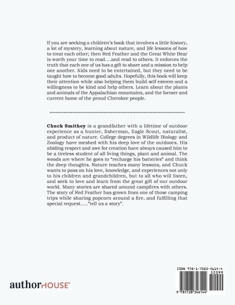 If you are seeking a children's book that involves a little history, a lot of mystery, learning about nature, and life lessons of how to treat each other; then Red Feather and the Great White Bear is worth your time to read....and read to others. It enforces the truth that each one of us has a gift to share and a mission to help one another. Kids need to be entertained, but they need to be taught how to become good adults. Hopefully, this book will keep their attention while also helping them build self esteem and a willingness to be kind and help others. Learn about the plants and animals of the Appalachian mountains, and the former and current home of the proud Cherokee people.