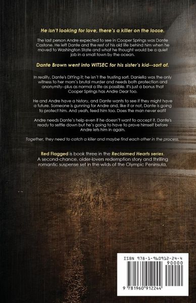 He isn't looking for love, there's a killer on the loose. The last person Andre expected to see in Cooper Springs was Dante Castone. He left Dante and the rest of his old life behind him when he moved to Washington State and what he thought would be a quiet job in a small town by the ocean. Dante Brown went into WITSEC for his sister's kid--sort of. In reality, Dante's DIYing it; he isn't the trusting sort. Daniella was the only witness to her mom's brutal murder and needs both protection and anonymity--plus as normal a life as possible. It's just a bonus that Cooper Springs has Andre Dear too. He and Andre have a history, and Dante wants to see if they might have a future. Someone is gunning for Andre and, like it or not, Dante is going to protect him. And yeah, feed him too. Does the man never eat? Andre needs Dante's help even if he doesn't want to accept it. Dante's ready to settle down but he's going to have to prove himself before Andre lets him in again. Together, they need to catch a killer and maybe find each other in the process. Red Flagged is book three in the Reclaimed Hearts series. A second-chance, older-lovers redemption story and thrilling romantic suspense set in the wilds of the Olympic Peninsula.