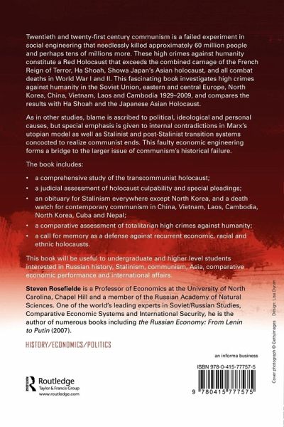 Red Holocaust investigates high crimes against humanity in the Soviet Union, eastern and central Europe, North Korea, China, Vietnam, Laos and Cambodia 1929-2009, and compares the results with Ha Shoah and the Japanese Asian Holocaust. As in other studies, blame is ascribed to political, ideological and personal causes, but special emphasis is given to internal contradictions in Marx's utopian model as well as Stalinist and post-Stalinist transition systems concocted to realize communist ends. This faulty economic engineering forms a bridge to the larger issue of communism's historical failure.