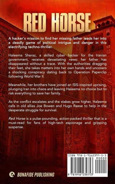 A hacker's mission to find her missing father leads her into a deadly game of political intrigue and danger in this electrifying techno-thriller. Haleema Sheraz, a skilled cyber hacker for the Iranian government, receives devastating news: her father has disappeared without a trace. With the authorities dragging their feet, she takes matters into her own hands and uncovers a shocking conspiracy dating back to Operation Paperclip during World War II. Meanwhile, her brothers have joined an ISIS-inspired uprising, plunging Iran into chaos and leaving Haleema no choice but to risk everything to save her family. As the conflict escalates and the stakes grow higher, Haleema calls in old allies Joe Bowen and Hugo Reese to help in the desperate struggle for survival. Red Horse is a pulse-pounding, action-packed thriller that is a must-read for fans of high-tech espionage and gripping suspense.