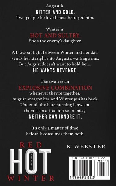 From USA Today Bestselling Author K Webster, comes a new forbidden romance standalone novel! August is bitter and cold. Two people he loved most betrayed him. Winter is hot and sultry. She's the enemy's daughter. A blowout fight between Winter and her dad sends her straight into August's waiting arms. But August doesn't want to hold her...he wants revenge. The two are an explosive combination whenever they're together. August antagonizes and Winter pushes back. Under all the hate burning between them is an attraction so intense, neither can ignore it. It's only a matter of time before it consumes them both.