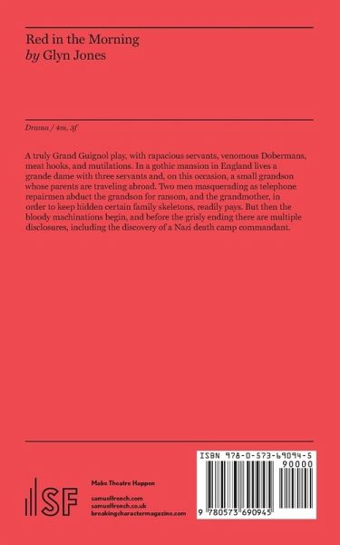 A truly Grand Guignol play, with rapacious servants, venomous Dobermans, meat hooks, and mutilations. In a gothic mansion in England lives a grande dame with three servants and, on this occasion, a small grandson whose parents are traveling abroad. Two men masquerading as telephone repairmen abduct the grandson for ransom, and the grandmother, in order to keep hidden certain family skeletons, readily pays. But then the bloody machinations begin, and before the grisly ending there are multiple disclosures, including the discovery of a Nazi death camp commandant.