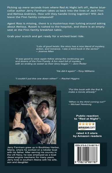 Picking up mere seconds from where Red At Night left off, Maine blue-collar author Jerry Farnham takes us back into the lives of Jack Finn and Melissa Andrews. How will the new couple handle pregnancy? How will they handle living together? Will Jack leave the Finn family compound? Agent Ross is missing, there is a mysterious man lurking around asking about Melissa, Russell is rushed to the hospital, and there is an empty seat at the Finn family breakfast table. Grab your scotch and get ready for an intense boat ride!