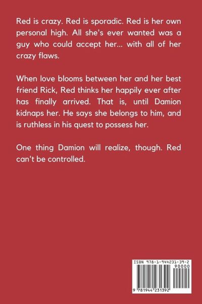 Red is insane. Red is erratic. Her own particular high is red. She has only ever desired a man who would accept her-along with all of her bizarre defects. Red believes her happy ever after has finally come as she falls in love with her best friend Rick. Up until Damion abducts her, that is. He claims that she is his, and he is relentless in his pursuit of possessing her. Damion will understand one thing, though. Red is uncontrollable.
