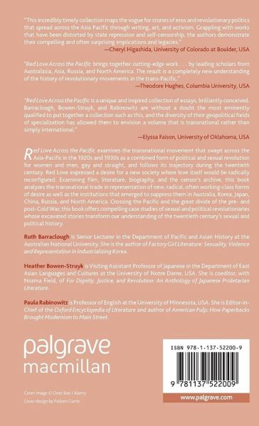 "Red Love Across the Pacific brings together cutting-edge work by leading scholars from Australasia, Asia, Russia, and North America. The result is a completely new understanding of the history of revolutionary movements in the trans-Pacific." Theodore Hughes, Columbia University, USA
