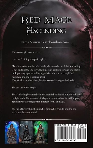 The servant girl has a secret... ...and she's hiding it in plain sight. Hana works for a well-to-do family who treats her well, but something is not quite right. The servant girl doesn't act like a servant. She speaks multiple languages including high elvish, she is an accomplished musician, and she is a skilled artist. There is also another talent, but it's a secret Hana guards closely. She can use blood magic. She is in hiding because she knows that if she is found out, she will have to fight in the Tournament of Mages, a contest where she will be pitted against five other mages with…mehr