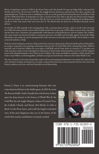 Photos of clandestine activity in 1962 in the Soviet Union and Cuba disturb US super spy Edgar Kelly, codenamed the Sheriff, and his Posse. He fears the Cold War, the struggle between democracy and autocracy, has taken a perilous and unpredictable turn. To find out what is unfolding, he needs eyes on the ground. He's frustrated because the KGB has Cuba and the USSR locked down. In desperation, he takes a calculated risk and is able to slip spies into Havana and Leningrad. The spies face danger and capture, but discover that the Soviets are secretly and recklessly shipping and installing nuclear missiles in Cuba, only ninety miles away from the US. The Sheriff relays the discovery to President Kennedy and his advisers. On October 22, JFK responds to the emerging threat with a naval quarantine of Cuba, a plan to invade Cuba and attack the USSR with nuclear missiles, and an order for Kelly and the Posse to go to the USSR to find a way out of the crisis. Kelly and the Posse enter a byzantine and unpredictable world that pits acting KGB director and neo-Stalinist Yuri Volkhov, who wants nuclear war because he believes communist autocracy is inevitable and invincible, against Soviet leader Nikita Khrushchev, who realizes he erred in placing missiles Cuba and wants to deescalate and asks Kelly, who he thinks is a well-connected academic, to help. With the end of civilization on the line, Kelly and the Posse maneuver desperately to block the KGB and boost Khrushchev by trying to tamp down the mounting confrontation between the US and USSR and by enlisting Pope John XXIII to intercede, only to find that Volkhov has secret plans to kill Kelly and the Pope, down an American U-2 spy plane over Cuba, and start a nuclear war by ordering Soviet submarines to shoot nuclear-armed torpedoes, each one with the explosive power of the Hiroshima bomb, at the US fleet in the Caribbean. The action and thrills are relentless as Kelly and the Posse work to stop Volkhov, avoid Armageddon, and find an unexpected and climatic solution to the Cuban Missile Crisis. The story is based on real events and provides readers with an entertaining and informative story about the Cuban missile crisis and shows freedom and democracy are under constant threat from men and movements who have lost touch with history, tradition, and virtue, and favor fratricidal war and dictatorship.