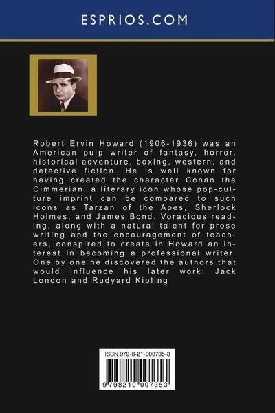 Robert Ervin Howard (1906-1936) was an American pulp writer of fantasy, horror, historical adventure, boxing, western, and detective fiction. He is well known for having created the character Conan the Cimmerian, a literary icon whose pop-culture imprint can be compared to such icons as Tarzan of the Apes, Sherlock Holmes, and James Bond. Voracious reading, along with a natural talent for prose writing and the encouragement of teachers, conspired to create in Howard an interest in becoming a professional writer. One by one he discovered the authors that would influence his later work: Jack London and Rudyard Kipling.