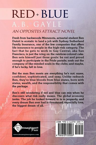 An Opposites Attract novel Fresh from backwoods Minnesota, actuarial student Ben Dutoit is ecstatic to land a job with Sydney Sutherland Family Insurance, one of the few companies that offers life insurance to people in the high-risk category. The fact that he gets to work in Gay Central, aka San Francisco, is just the icing on the rainbow-colored cake. Ben sets himself just three goals: be out and proud enough to participate in the Pride parade; seek out the company of like-minded souls in the clubs; and maybe, if he's lucky, fall in love. But the men Ben meets are everything he's not: suave, confident, sophisticated, and sexy. Unlike redneck Ben, they're blue bloods from blue states, born with status, wealth, and the responsibility that comes with the package. Ben's still wondering if red and blue can mix when he discovers what risk really means. The global economy tanks. The job he looked forward to is in jeopardy, and every dream Ben ever had is threatened, especially love, the biggest dream of all.