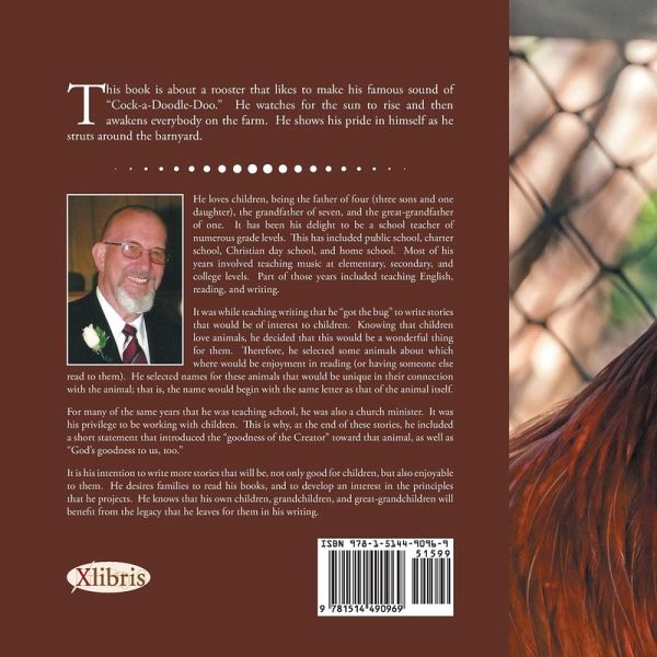 He loves children, being the father of four (three sons and one daughter), the grandfather of seven, and the great-grandfather of one. It has been his delight to be a school teacher of numerous grade levels. This has included public school, charter school, Christian day school, and home school. Most of his years involved teaching music at elementary, secondary, and college levels. Part of those years included teaching English, reading, and writing. It was while teaching writing that he "got the bug" to write stories that would be of interest to children. Knowing that children love animals, he decided that this would be a wonderful thing for them. Therefore, he selected some animals about which where would be enjoyment in reading (or having someone else read to them). He selected names for these animals that would be unique in their connection with the animal; that is, the name would begin with the same letter as that of the animal itself. For many of the same years that he was teaching school, he was also a church minister. It was his privilege to be working with children. This is why, at the end of these stories, he included a short statement that introduced the "goodness of the Creator" toward that animal, as well as "God's goodness to us, too." It is his intention to write more stories that will be, not only good for children, but also enjoyable to them. He desires families to read his books, and to develop an interest in the principles that he projects. He knows that his own children, grandchildren, and great-grandchildren will benefit from the legacy that he leaves for them in his writing.