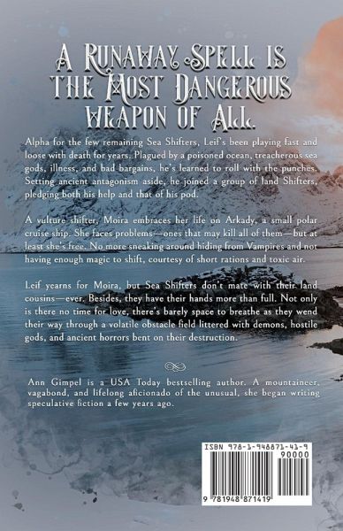 A runaway spell is the most dangerous weapon of all. Alpha for the few remaining Sea Shifters, Leif’s been playing fast and loose with death for years. Plagued by a poisoned ocean, treacherous sea gods, illness, and bad bargains, he’s learned to roll with the punches. Setting ancient antagonism aside, he joined a group of land Shifters, pledging both his help and that of his pod. A vulture shifter, Moira embraces her life on Arkady, a small polar cruise ship. She faces problems—ones that may kill all of them—but at least she’s free. No more sneaking around hiding from Vampires and not having enough magic to shift, courtesy of short rations and toxic air. Leif yearns for Moira, but Sea Shifters don’t mate with their land cousins—ever. Besides, they have their hands more than full. Not only is there no time for love, there’s barely space to breathe as they wend their way through a volatile obstacle field littered with demons, hostile gods, and ancient horrors bent on their destruction.
