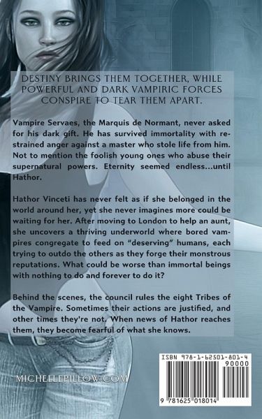 NYT & USAT Bestselling Author Destiny brings them together, while powerful and dark vampiric forces conspire to tear them apart. Vampire Servaes, the Marquis de Normant, never asked for his dark gift. He has survived immortality with restrained anger against a master who stole life from him. Not to mention the foolish young ones who abuse their supernatural powers. Eternity seemed endless…until Hathor. Hathor Vinceti has never felt as if she belonged in the world around her, yet she never imagines more could be waiting for her. After moving to London to help an aunt, she uncovers a thriving underworld where bored vampires congregate to feed on "deserving" humans, each trying to outdo the others as they forge their monstrous reputations. What could be worse than immortal beings with nothing to do and forever to do it? Behind the scenes, the council rules the eight Tribes of the Vampire. Sometimes their actions are justified, and other times they're not. When news of Hathor reaches them, they become fearful of what she knows. Urban Fantasy Dark Paranormal Vampire Romance