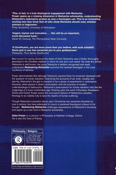Best known for having declared the death of God, Nietzsche was a thinker thoroughly absorbed in the Christian tradition in which he was born and raised. Yet while the atheist Nietzsche is well known, the pious Nietzsche is seldom recognized and rarely understood. Redeeming Nietzsche examines the residual theologian in the most vociferous of atheists. Giles Fraser demonstrates that although Nietzsche rejected God, he remained obsessed with the question of human salvation. Examining his accounts of art, truth, morality and eternity, Nietzsche's thought is revealed to be
