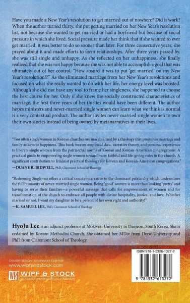 Have you made a New Year's resolution to get married out of nowhere? Did it work? When the author turned thirty, she put getting married on her New Year's resolution list, not because she wanted to get married or had a boyfriend but because of social pressure in which she lived. Social pressure made her think that if she wanted to ever get married, it was better to do so sooner than later. For three consecutive years, she prayed about it and made efforts to form relationships. After three years passed by, she was still single and unhappy. As she reflected on her unhappiness, she finally realized that she was not happy because she was not able to accomplish a goal that was ultimately out of her control. "How absurd it was to put 'get married' on my New Year's resolution!?" As she eliminated marriage from her New Year's resolutions and focused on what she really wanted to do with her life, her energy level was boosted. Although she did not have any tool to frame her singleness, she happened to choose the best course for her. Only if she knew the socially constructed characteristics of marriage, the first three years of her thirties would have been different. The author hopes ministers and never-married single women can learn what we think is normal is a very contextual product. The author invites never-married single women to own their own stories instead of being owned by metanarratives in their lives.