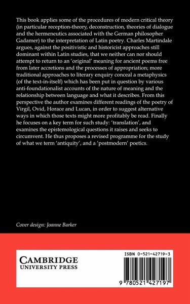 This book applies some of the procedures of modern critical theory to the interpretation of Latin poetry.