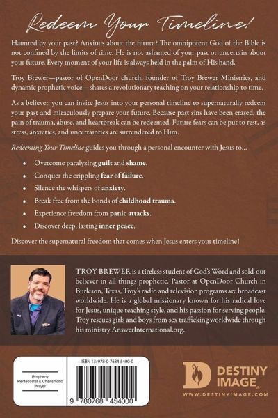 Redeem Your Timeline! Haunted by your past? Anxious about the future? The omnipotent God of the Bible is not confined by the limits of time. He is not ashamed of your past or uncertain about your future. Every moment of your life is always held in the palm of His hand. Troy Brewer - pastor of OpenDoor church, founder of Troy Brewer Ministries, and dynamic prophetic voice - shares a revolutionary teaching on your relationship to time. As a believer, you can invite Jesus into your personal timeline to supernaturally redeem your past and miraculously prepare your future. Because past sins have been erased, the pain of trauma, abuse, and heartbreak can be redeemed. Future fears can be put to rest, as stress, anxieties, and uncertainties are surrendered to Him. Redeeming Your Timeline guides you through a personal encounter with Jesus to... Overcome paralyzing guilt and shame. Conquer the crippling fear of failure. Silence the whispers of anxiety. Break free from the bonds of childhood trauma. Experience freedom from panic attacks. Discover deep, lasting inner peace. Discover the supernatural freedom that comes when Jesus enters your timeline!