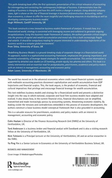 The world has moved on in the advanced economies where credit based financial systems coupled with malleable accounting systems disconnect capitalization and wealth accumulation from GDP trajectories and financial surplus. This, the book argues, is the product of economic, financial and cultural imperatives that privilege and encourage financial leverage for wealth accumulation. This text re-works business models for a financialized world and presents a distinctive insight into the way in which national, corporate and focal firm business models have adapted and evolved. It also shows how, in the current financial crisis, financial disturbances can be amplified, transmitted and made porous, by accounting systems, threatening economic stability. By making visible the tensions and contradictions embedded in this process of economic development, the authors have constructed a loose business model conceptual framework that is also grounded in accounting. This is a valuable resource for practitioners, academics and policy makers with an interest in management, accounting and economic policy.