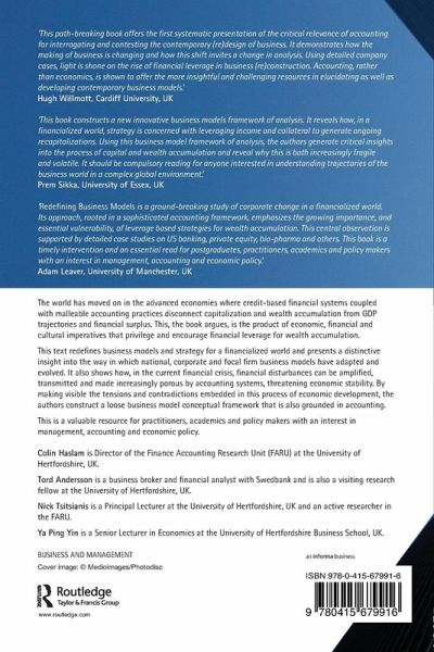 The world has moved on in the advanced economies where credit based financial systems coupled with malleable accounting systems disconnect capitalization and wealth accumulation from GDP trajectories and financial surplus. This, the book argues, is the product of economic, financial and cultural imperatives that privilege and encourage financial leverage for wealth accumulation. This text re-works business models for a financialized world and presents a distinctive insight into the way in which national, corporate and focal firm business models have adapted and evolved. It also shows how, in the current financial crisis, financial disturbances can be amplified, transmitted and made porous, by accounting systems, threatening economic stability. By making visible the tensions and contradictions embedded in this process of economic development, the authors have constructed a loose business model conceptual framework that is also grounded in accounting. This is a valuable resource for practitioners, academics and policy makers with an interest in management, accounting and economic policy.