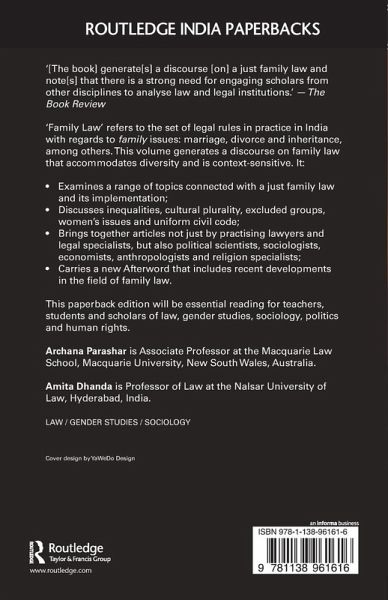 'Family Law' refers to the set of legal rules which are in practice in India with regards to 'family' issues - marriage, divorce, inheritance, etc. This volume is a collection of articles by different scholars across disciplines to generate a discourse on just Family Law.