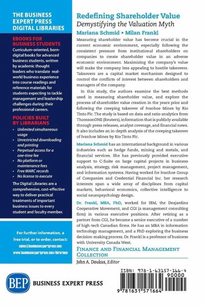 Measuring shareholder value has become crucial in the current economic environment, especially following the consistent pressure from institutional shareholders on companies to create shareholder value in an adverse economic environment. Maximizing the company's value will make the company less appealing to hostile takeovers. Takeovers are a capital market mechanism designed to control the conflicts of interest between shareholders and managers of the company. In this study, the authors examine the best methods used in measuring shareholder value, and explore the process of shareholder value creation in the years prior and following the creeping takeover of Ivanhoe Mines by Rio Tinto Plc. The study is based on data and ratio analytics from ThomsonONE (Reuters), information that is publicly available through press releases, analyst coverage, and financial news. It also includes an in-depth analysis of the creeping takeover of Ivanhoe Mines by Rio Tinto Plc.