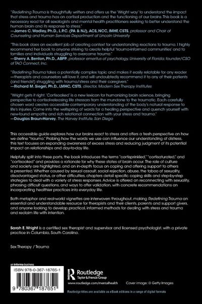 This accessible guide explores how our brains react to stress and offers a fresh perspective on how we define "trauma." Probing how the words we use can influence our understanding of distress, this text focuses on expanding awareness of excess stress and reducing judgment of its potential impact on relationships and day-to-day life. Helpfully split into three parts, the book introduces the terms "cortisprinkled," "cortisaturated," and "cortisoaked" and provides a rationale for why these states of brain occur. The role of culture and society are highlighted, and an in-depth focus on coping and offering support to others is presented. Whether caused by sexual assault, social rejection, abuse, the taboo of sexuality, disadvantaged status, or other difficulties, chapters detail specific coping skills and step-by-step strategies to deal with a variety of stress responses. Advice is offered on reconnecting with sexuality, phrasing difficult questions, and ways to offer validation, with concrete recommendations on incorporating healthier practices into everyday life. Both metaphor and real-world vignettes are interwoven throughout, making Redefining Trauma an essential and understandable resource for therapists and their clients, parents and support givers, and anyone looking to develop practical, informed methods for dealing with stress and trauma and reclaim life with intention.