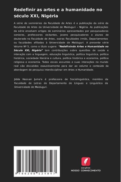 A série de seminários da Faculdade de Artes é a publicação da série da Faculdade de Artes da Universidade de Maiduguri ¿ Nigéria. As publicações da série envolvem artigos de seminários apresentados por pesquisadores seniores, professores visitantes, jovens pesquisadores e alunos de doutorado na Faculdade de Artes, outras Faculdades irmãs, Departamentos ou faculdades afiliadas à Universidade de Maiduguri. A presente série Volume Nº 5, como o título sugere: ¿Redefinindo Artes e Humanidade no Século XXI, Nigériä tem contribuições sobre questões de saúde e interação com a linguagem, educação linguística, política linguística, política histórica, sociedade literária e cultura, política histórica e economia, política religiosa e economia. Todos esses assuntos e suas interações no mundo real são discutidos exaustivamente para dar ao volume o conteúdo da abordagem de pesquisa interdisciplinar em Artes e Humanidade.