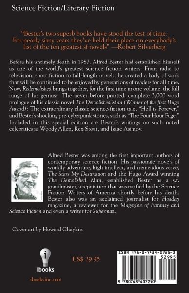 This edition brings together a range of works by Alfred Bester. It includes the novel "The Demolished Man", "Hell is Forever" and "The Four Hour Fuge", there are also Bester's writings on noted celebrities such as Woody Allen, Rex Stout and Issac Asimov.