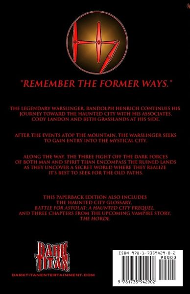 "REMEMBER THE FORMER WAYS." Randolph Henrich continues his journey to The Haunted City with his associates Cody Landon and Beth Grasslands at his side Along the way, the three fight off the dark forces of both man and spirit that encompass the ruined lands as they uncover a secret world where they realize that it's best to seek for the old paths.