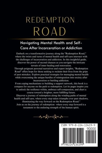 In the labyrinth of life, some journeys seem destined to lead us astray, plunging us into the depths of despair, where redemption feels like a distant dream. "Redemption Road" illuminates a path through the darkness, offering a guiding light to those navigating the turbulent waters of mental health challenges, addiction, and the aftermath of incarceration. It's a beacon of hope, a testament to the human spirit's resilience, and a roadmap to reclaiming one's life.Transformative Journey: Within these pages, you'll embark on a transformative odyssey, resonating with authenticity and empathy. Beacon of Wisdom: Shares real people's harrowing journeys, weaving together personal anecdotes, expert insights, and practical strategies. Empowerment: Empowers readers to seek inner healing and restoration. From the suffocating grip of addiction to the suffocating stigma of incarceration, "Redemption Road" fearlessly confronts the demons that haunt the mind and the scars that mar the soul. It doesn't shy away from the raw, unvarnished truths of mental illness and the criminal justice system but instead offers a compassionate hand to those who feel lost in the shadows.Riveting Storytelling: Engages with riveting storytelling and profound introspection. Courageous Confrontation: Invites readers to confront their past with courage and embrace their present with acceptance. Future of Hope: Helps forge a future filled with hope, with each chapter serving as a stepping stone on the path to redemption. "Redemption Road" is more than just a roadmap-it's a lifeline for those grappling with the dual burdens of mental health struggles and societal reintegration. It's a sanctuary where vulnerability is celebrated, resilience is revered, and second chances are not just possible but inevitable.Comprehensive Tools: Equips readers with tools for self-care, including mindfulness practices and boundary-setting techniques. Survival Guide: Acts as a survival guide for the soul, a companion for the journey, and a testament to the transformative power of resilience. Whether you're grappling with your demons or seeking to understand the struggles of a loved one, "Redemption Road" offers solace, insight, and, above all, hopes. It's a reminder that no matter how rocky the path may seem, redemption is not beyond reach-it's waiting for you to claim it. So, dear reader, if you're ready to embark on a journey of healing, if you're seeking redemption amidst the wreckage of the past if you believe in the power of second chances, then let "Redemption Road" be your guide. Turn the page, take the first step, and embrace the transformative power of inner healing and restoration. Your redemption waits.