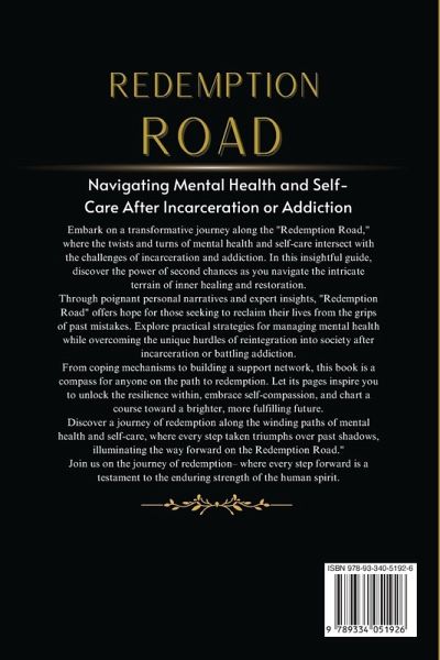 In the labyrinth of life, some journeys seem destined to lead us astray, plunging us into the depths of despair, where redemption feels like a distant dream. "Redemption Road" illuminates a path through the darkness, offering a guiding light to those navigating the turbulent waters of mental health challenges, addiction, and the aftermath of incarceration. It's a beacon of hope, a testament to the human spirit's resilience, and a roadmap to reclaiming one's life. · Transformative Journey: Within these pages, you'll embark on a transformative odyssey, resonating with authenticity and empathy. · Beacon of Wisdom: Shares real people's harrowing journeys, weaving together personal anecdotes, expert insights, and practical strategies. · Empowerment: Empowers readers to seek inner healing and restoration. From the suffocating grip of addiction to the suffocating stigma of incarceration, "Redemption Road" fearlessly confronts the demons that haunt the mind and the scars that mar the soul. It doesn't shy away from the raw, unvarnished truths of mental illness and the criminal justice system but instead offers a compassionate hand to those who feel lost in the shadows. · Riveting Storytelling: Engages with riveting storytelling and profound introspection. · Courageous Confrontation: Invites readers to confront their past with courage and embrace their present with acceptance. · Future of Hope: Helps forge a future filled with hope, with each chapter serving as a stepping stone on the path to redemption. "Redemption Road" is more than just a roadmap-it's a lifeline for those grappling with the dual burdens of mental health struggles and societal reintegration. It's a sanctuary where vulnerability is celebrated, resilience is revered, and second chances are not just possible but inevitable. · Comprehensive Tools: Equips readers with tools for self-care, including mindfulness practices and boundary-setting techniques. · Survival Guide: Acts as a survival guide for the soul, a companion for the journey, and a testament to the transformative power of resilience. Whether you're grappling with your demons or seeking to understand the struggles of a loved one, "Redemption Road" offers solace, insight, and, above all, hopes. It's a reminder that no matter how rocky the path may seem, redemption is not beyond reach-it's waiting for you to claim it.
