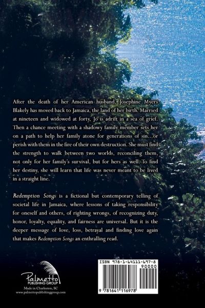 After the death of her American husband, Josephine Myers Blakely has moved back to Jamaica, the land of her birth. Married at nineteen and widowed at forty, Jo is adrift in a sea of grief. Then a chance meeting with a shadowy family member sets her on a path to help her family atone for generations of sin...or perish with them in the fire of their own destruction. She must find the strength to walk between two worlds, reconciling them, not only for her family's survival, but for hers as well. To find her destiny, she will learn that life was never meant to be lived in a straight line. Redemption Songs is a fictional but contemporary telling of societal life in Jamaica; where lessons of taking responsibility for oneself and others, of righting wrongs, of recognizing duty, honor, loyalty, equality, and fairness are universal. But it is the greater message of love, loss, betrayal and finding love again that makes Redemption Songs an enthralling read.