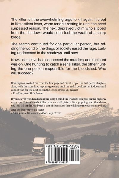 Join Redemption and follow a serial killer that leaves murdered truck drivers across Canada. Meet a variety of characters including Maggie a spunky young truck driver, Colby the detective hunting for the killer, Ryan a family man who travels the highways, Noelle the 'working girl' who hangs around truck stops, Frank the grizzled veteran driver and Audrey the psychiatrist. Is one of these the killer? Or will one become the victim? "The killer felt the overwhelming urge to kill again. It crept in like a silent lover, warm tendrils setting in until the need surpassed reason. The next depraved victim who slipped from the shadows would soon feel the wrath of a sharp blade. The search continued for one particular person, but ridding the world of the dregs of society eased the rage. Lurking undetected in the shadows until now. Now a detective had connected the murders, and the hunt was on. One hunting to catch a serial killer, the other hunting the one person responsible for the bloodshed. Who will succeed?"