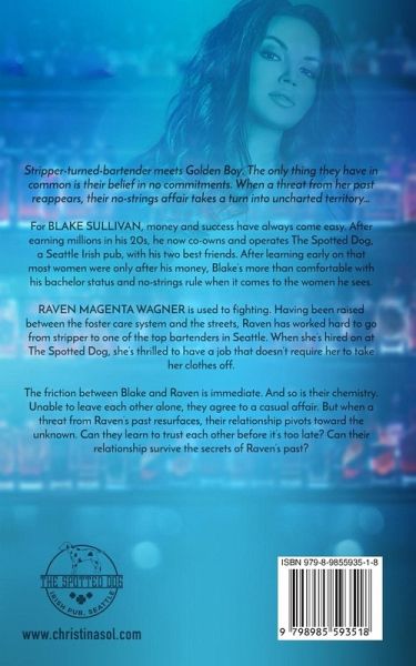 Stripper-turned-bartender meets Golden Boy. The only thing they have in common is their belief in no commitments. When a threat from her past reappears, their no-strings affair takes a turn into uncharted territory... For Blake Sullivan, money and success have always come easy. After earning millions in his early 20s, he now co-owns and operates The Spotted Dog, a Seattle Irish pub, with his two best friends. After learning early on that most women were only after his money, Blake's more than comfortable with his bachelor status and no-strings rule when it comes to the women he sees. Raven Magenta Wagner is used to fighting. Being raised in between the foster care system and the streets, Raven has worked hard to go from stripper to one of the top bartenders in Seattle. When she's hired on at The Spotted Dog, she's thrilled to have a job that doesn't require her to take her clothes off. The friction between Blake and Raven is immediate. And so is their chemistry. Unable to leave each other alone, they agree to a casual affair. But when a threat from Raven's past resurfaces, their relationship pivots toward the unknown. Can they learn to trust each other before it's too late? Can their relationship survive the secrets of Raven's past? Author's Note: Please check the author's website for all tropes and CWs.