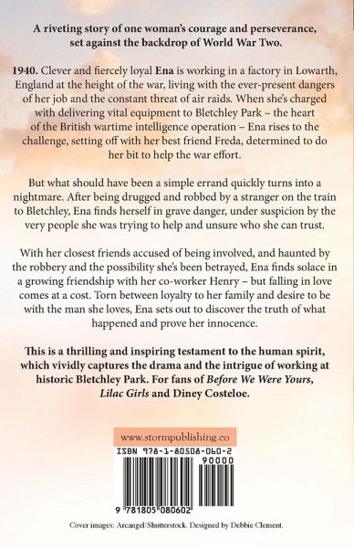 A riveting story of one woman's courage and perseverance, set against the backdrop of World War Two. 1940. Clever and fiercely loyal Ena Dudley is working in a factory in Lowarth, England at the height of the war, living with the ever-present dangers of her job and the constant threat of air raids. When she's charged with delivering vital equipment to Bletchley Park - the heart of the British wartime intelligence operation - Ena rises to the challenge, setting off with her best friend Freda, determined to do her bit to help the war effort. But what should have been a simple errand quickly turns into a nightmare. After being drugged and robbed by a stranger on the train to Bletchley, Ena finds herself in grave danger, under suspicion by the very people she was trying to help and unsure who she can trust. With her closest friends accused of being involved, and haunted by the robbery and the possibility she's been betrayed, Ena finds solace in a growing friendship with her co-worker Henry - but falling in love comes at a cost. Torn between loyalty to her family and desire to be with the man she loves, Ena sets out to discover the truth of what happened and prove her innocence. This is a thrilling and inspiring testament to the human spirit, which vividly captures the drama and the intrigue of working at historic Bletchley Park. For fans of Before We Were Yours, The Lilac Sisters and Diney Costeloe.